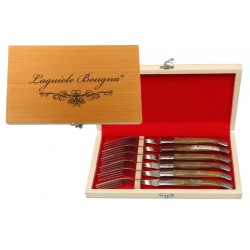 "Premium Oak Wood Handled Fork & Knife Set - Set of 6 Exquisite Horn I/M Knives from Pakistan"