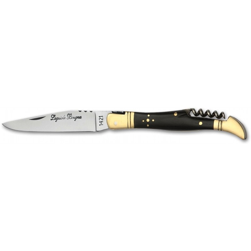 Stainless Steel Folding Pocket Knife with 12cm Blade & Corkscrew - Black Horn Handle | Wholesale Knife Suppliers